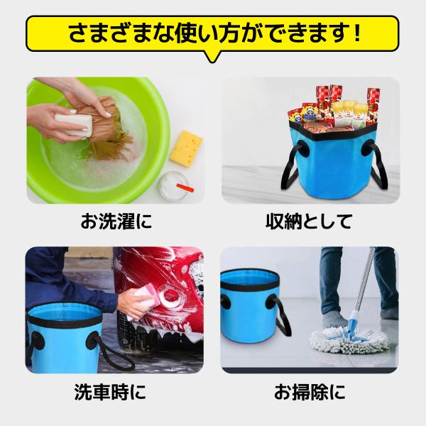 ・緊急時の防災バケツとしてはもちろん、アウトドアや荷物入れ、ゴミ箱代わりなど幅広い場面で活躍します。