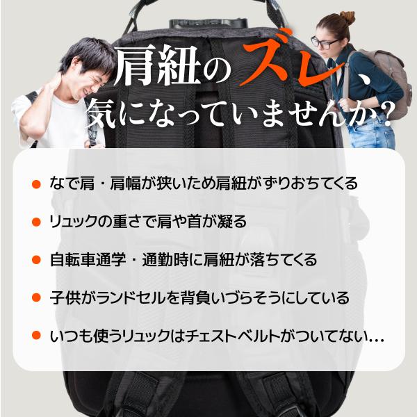 チェストベルト リュック 取り付け チェストストラップ 子供 キッズ 大人 メンズ レディース 胸 紐 後付け 装着簡単 ずり落ち防止 なで肩 長さ調節可能 21色