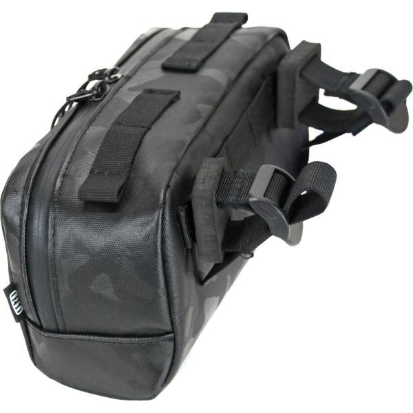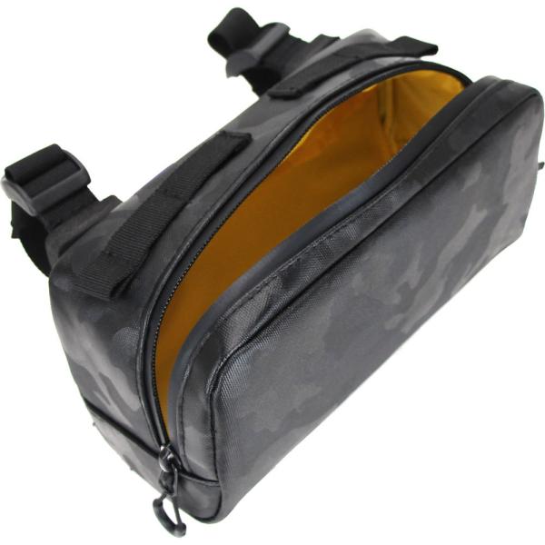 ハンドル低めのロードバイクでも、前輪に当たらず取り付けられるコンパクトサイズ スクエアタイプのコンパクトなフロントバッグ。ロードバイク、グラベルバイクにオススメ。 しっかりとした芯材を採用しているので、垂れ下がりにくい。 ワイヤーがフル内装のハンドルにも美しく取り付けられるように、ベルトの取り付け位置は背面と天面の2か所から選ぶことができます。 クッションスペーサー(厚さ10mmx2個)が付属しているので、ハンドルバーにしっかりと固定できます。 内側は中身が見えやすいように、黄色の裏地。 撥水素材と止水ファスナーを採用しているので、少々の雨なら大丈夫ですが、縫い目からは浸水します。 幅:210mm 奥行:90mm 高さ:110mm 重さ:155g 容量:1.2L 商品のカラーはディスプレイの種類等により、実物と異なって見える場合がございます。 掲載商品の仕様、ロゴ等のデザインは改良のため、変更される場合がございます。 また、メーカーが発表していない寸法や個人的なフィット感についてはお答えいたしかねます。 沖縄県への発送に送料無料は適用されません。購入金額に関わらず通常送料に別途加算されます。