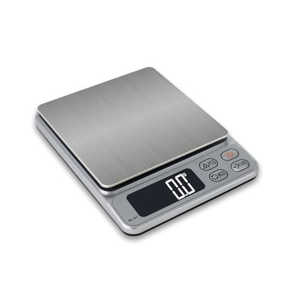 はかり デジタル デジタルスケールはかり 3000g 計量器 0.1g単位 3kg キッチン クッキングスケール (シルバー)