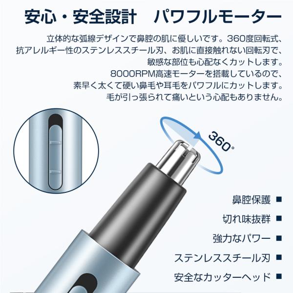 【マイクロUSBポート】鼻毛カッター usbは付属のUSBケーブルで簡単に充電でき、高性能リチウムイオンバッテリーを使用しています。