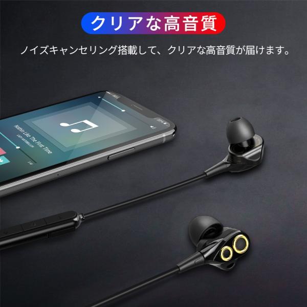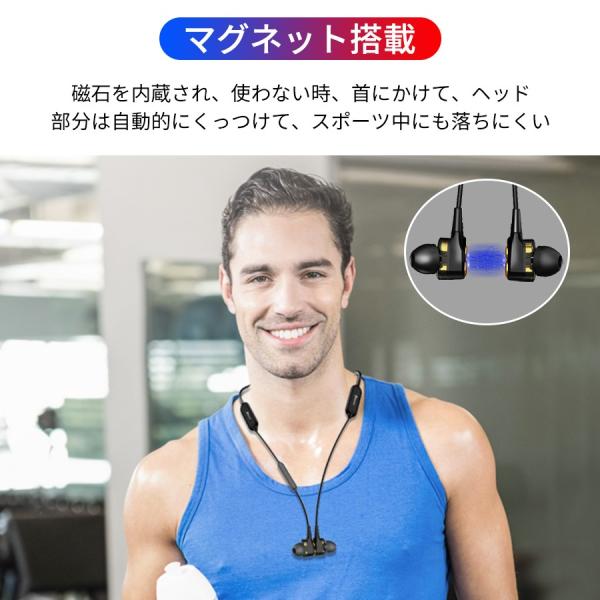 ワイヤレスイヤホン スポーツ イヤホン bluetooth5.0 両耳 高音質 16時間連続駆動 防水 デュアルドライバー マイク内蔵 ノイズキャンセリング マグネット(h5)