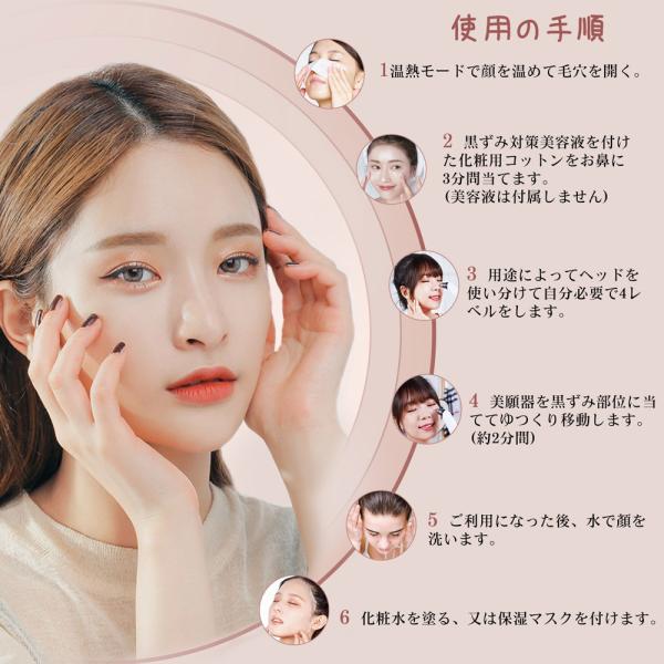 【温熱ケア機能付き】毛穴吸引機の底部にヒーターヘッドが付き、45℃温熱ケアモードに切り替え、Tゾーンや口元の肌を2~5分温熱ケアにより、毛穴を拡張して黒ずみの吸出しやすいです。