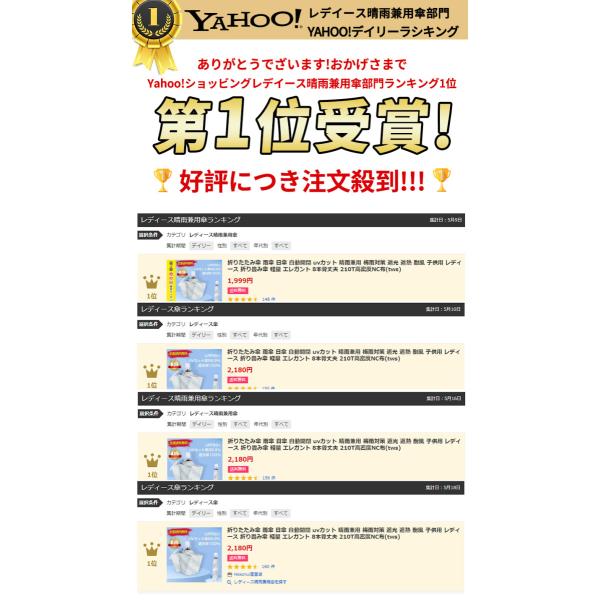 【晴雨兼用】210T高密度NC布を使用して、テフロン加工が施されています。軽く揺さぶるだけで雨水が落ちる程の撥水力です。晴れた日の日差し対策用としてはもちろん、急な雨にも対応できます。