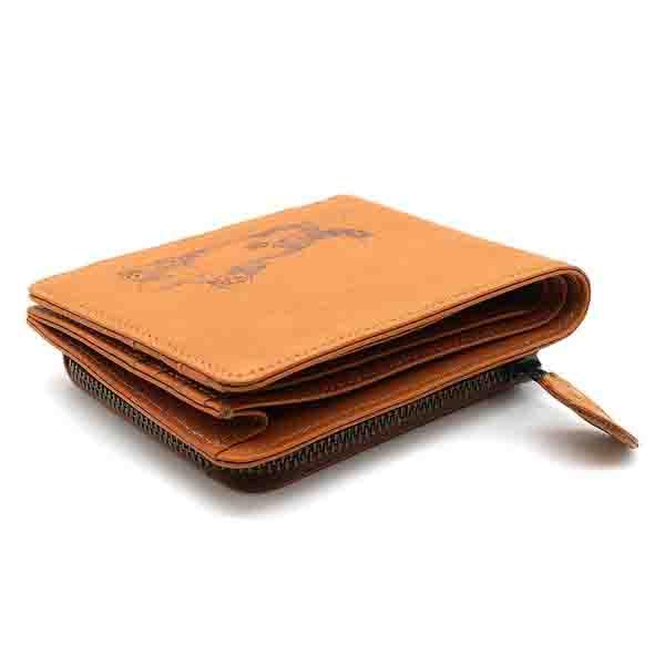 お札入れと小銭入れが同じ向きに配置されて、スムーズに出し入れができるお財布です。プレーンな二つ折り財布に、引手も大きくて出しやすいL字開閉の外付け小銭入れが合体。札入れは二段でひとつには片まちがついているので、使い勝手抜群です。