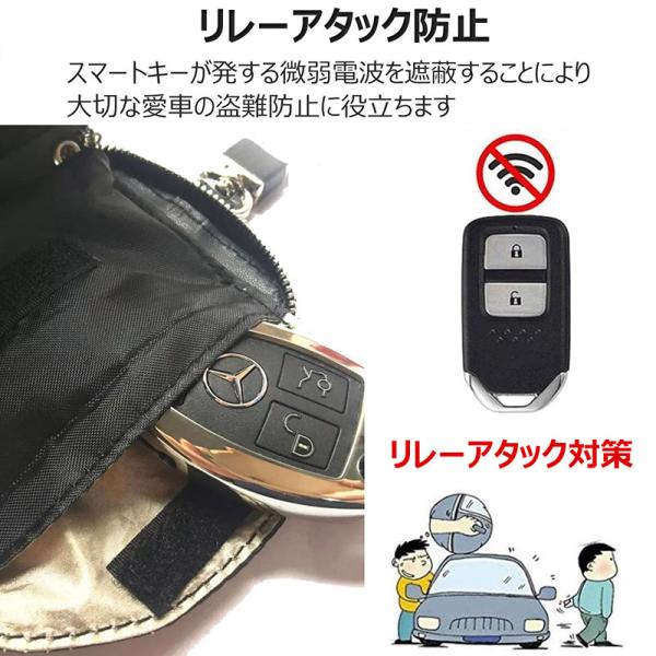 キーケース ポーチ リレーアタック 防止 対策 電波遮断 高級 本革 スマートキー ファスナー ジッパー Eyemag