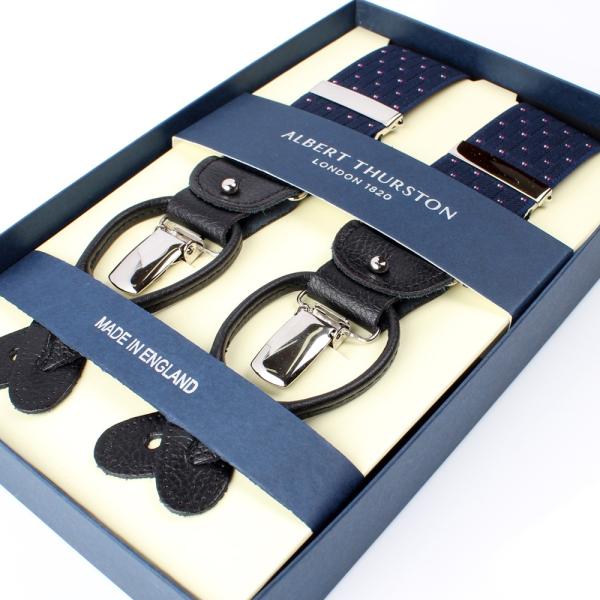 ALBERT THURSTON アルバートサーストン サスペンダー ネイビー ピンドット タキシード サスペンダー 高級 フォーマル