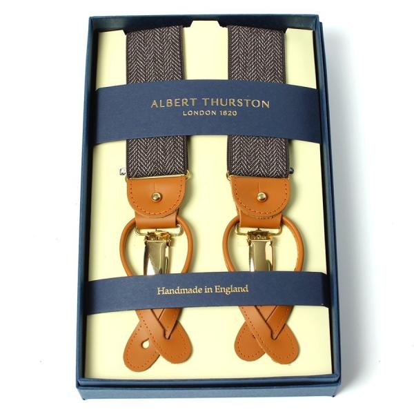 ALBERT THURSTON アルバートサーストン サスペンダー ブラウン ヘリンボーン柄 ブランド 高級 フォーマル