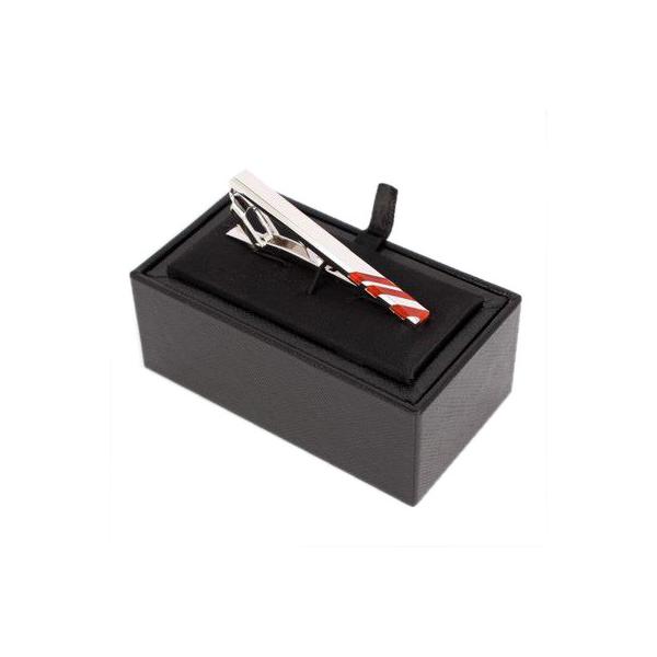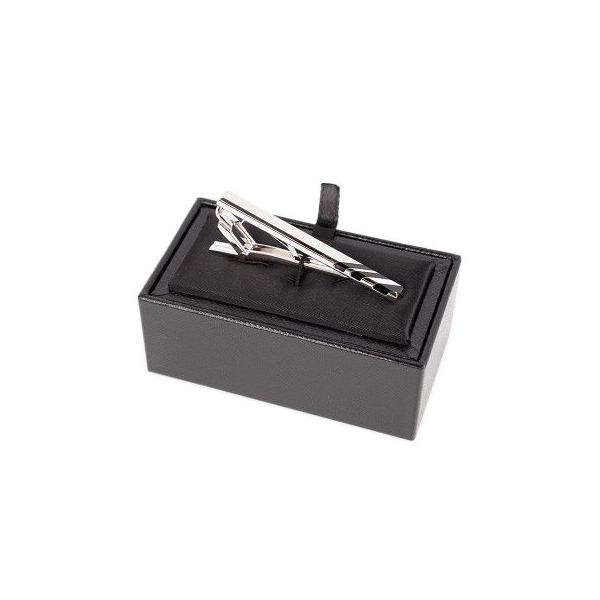シャープなスクエアの台に斜めのラインを施した美しいタイバー。