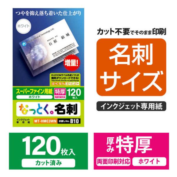 エレコム ELECOM なっとく。名刺(両面マット調タイプ・特厚口)「120枚/ホワイト」 MT-HMC3WN