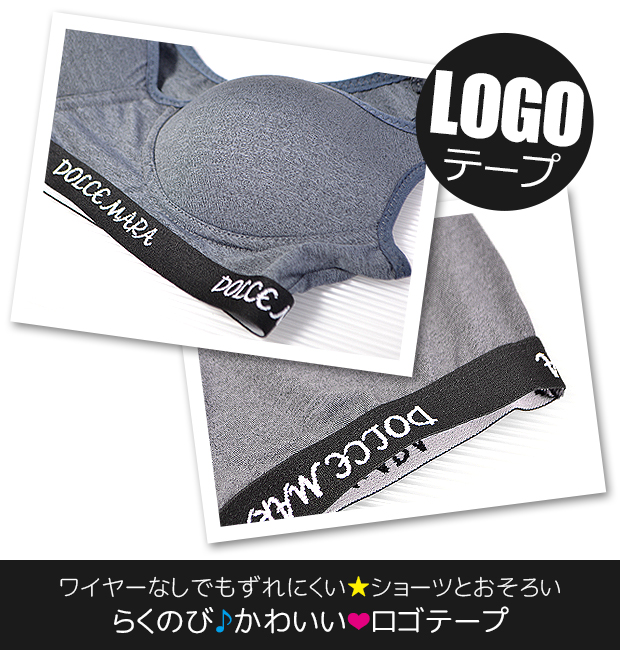 ロゴテープがアクセントのブラトップ&ショーツのペアセット登場!お子さまの初めてのブラにも最適♪ストレッチ性に優れた生地はカジュアルな印象の杢調生地。ショーツはレギュラーと一分丈の選べる2タイプ。一体型のモールドパッド付ブラトップはワイヤーなしでストレスフリーの着心地。ロゴ入りのゴムテープでずれも防いで安心。お家でのリラックスタイムも、アクティブにお出掛けも、デイリーに使えて何枚でも欲しくなる上下ペアセットです♪
