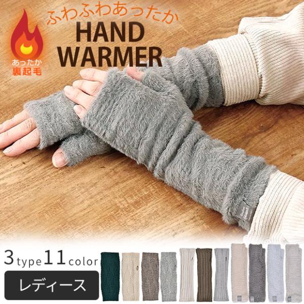 モヘア風 ロング ハンドウォーマー アームウォーマー ニット リブ編み 模様編み 指無し 指切り手袋 レディース 手袋 暖かい 可愛い 裏起毛 送料無料