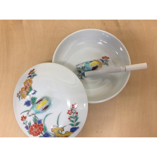 有田焼 伯父山窯 蓋付オシドリ丸灰皿 蓋付灰皿 父の日 喫煙グッズ おしゃれ オシドリ フタ物 ふた物