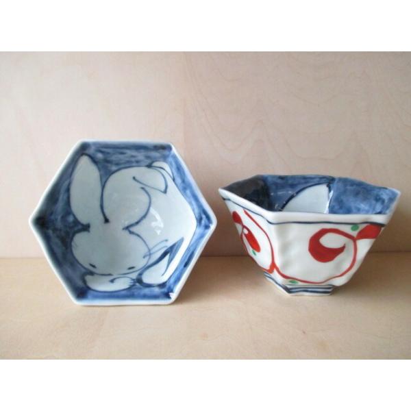 波佐見焼 光玉窯 六角小鉢 万歴 兎 9cm 10cm 動物柄 副菜入れ うさぎ ウサギ 兎 兔 卯 小鉢 食器 和食器 古代赤絵うさぎ六角仙茶