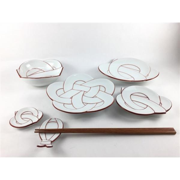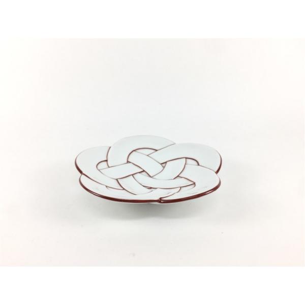 有田焼 田清窯 花結び小皿 11cm 太白赤線梅むすび小皿 朱線梅結び ムスビ 贈り物 結婚祝い 内祝い 組紐 お正月 お祝い事 食器