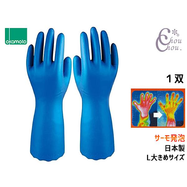 ■オカモト ビニール手袋 サーモ発泡 Lサイズ 1双 厚手 温かい 作業用 防寒 食器洗い 洗濯 掃除 園芸 洗車 L 両手分 OG-005L 送料無料