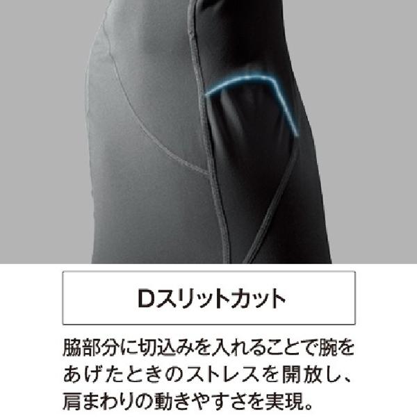 4WAYストレッチ・軽量・吸汗・速乾を保持する開発素材を採用。脇空け仕様より、腕上げ・回旋運動時のストレスを低減。