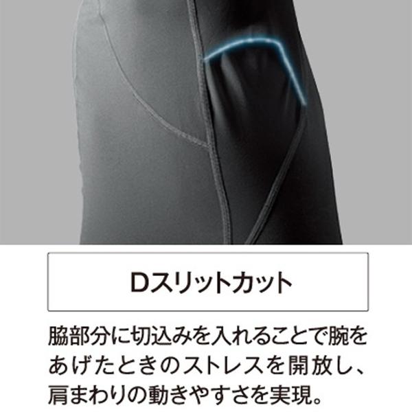 また、背中部分は肩甲骨を避ける縫製で肩まわりの動きやすさを実現。
