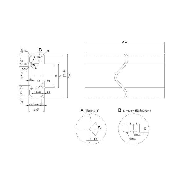 寸法//高さ:70×厚み:25mm、長さ:2500mm、重量:2.14kg