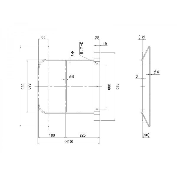 材質//鉄製SS400寸法//枠寸法(幅はBKT寸法含まず)幅:360×高:410mm、径:φ9、重量:1.30kg寸法図//画像よりご確認下さい 。表面処理//三価メッキ仕様//4t用、枠付