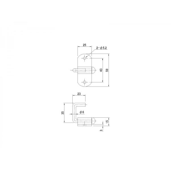 材質//ステンレスSUS304寸法//押金寸法/横:25×縦:59mm、穴ピッチ:43mm フック寸法/横:42×縦:35mm、フック径:φ6.0、重量:0.06kg寸法図//画像よりご確認下さい