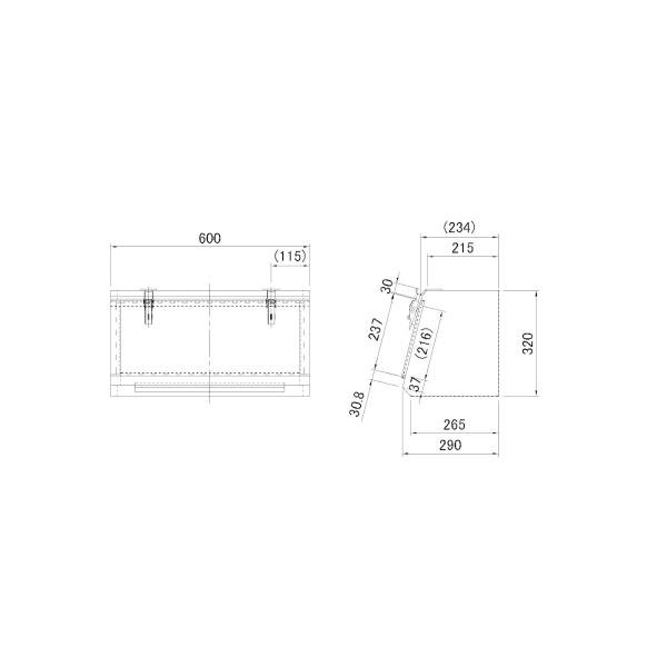 寸法//長さ:600×奥行:290mm×高さ:320、本体板厚:0.8mm、蓋板厚:1.0mm、重量:6.40kg