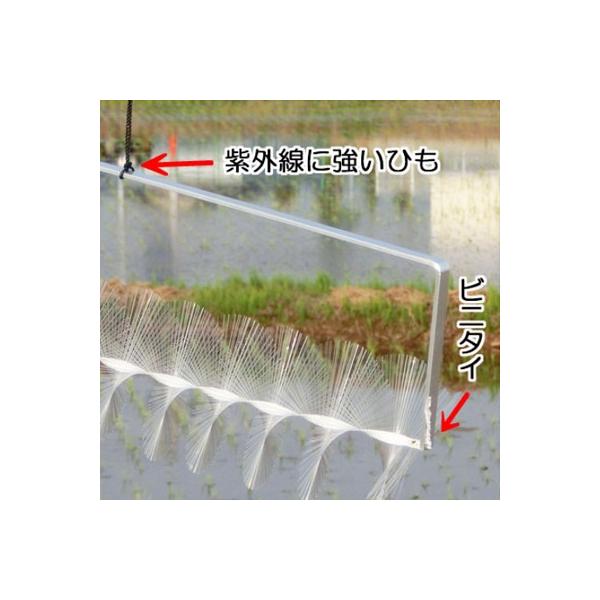 ただし餌がある所や巣の近くはカラスがこだわる場所ですので、ニューどこでもタイプを吊り下げて設置しよく動くようにします。飛来数やカラスの性質によりテグスを併用すると更に効果が高まります。