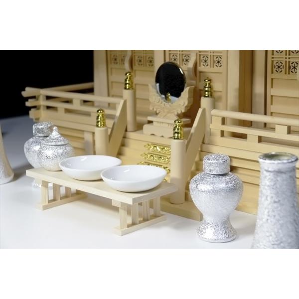 希少■神棚用 陶器■神具セット 7点 貴金属調 光沢仕上げ■銀ちりめん■土器■小〜中型の神棚に■中