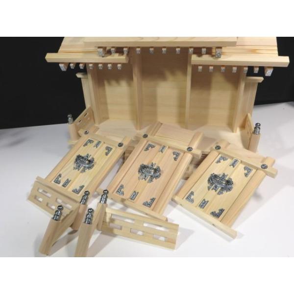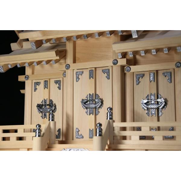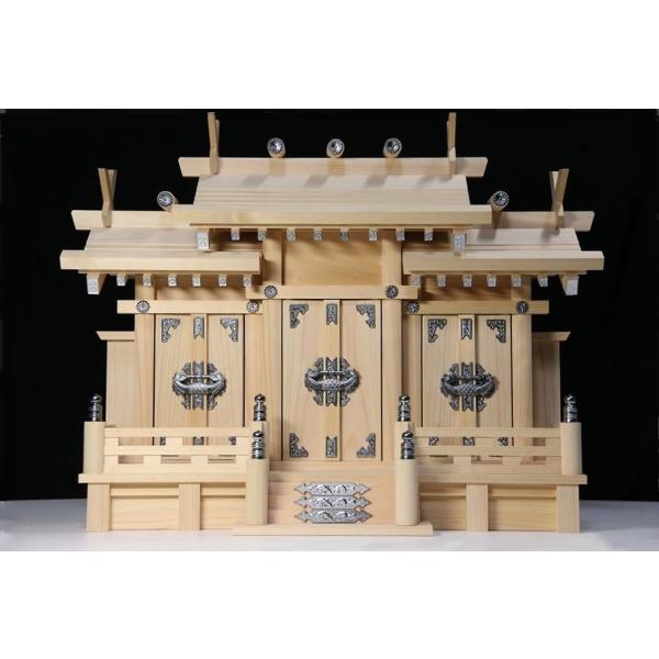 三社■屋根違■■銀風三社■■銀の擬宝珠■東濃ひのき 神棚 希少