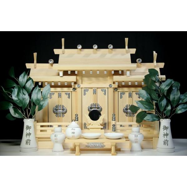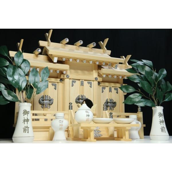 三社■屋根違い■■銀風三社■■神棚セット 最高級 神具セット付