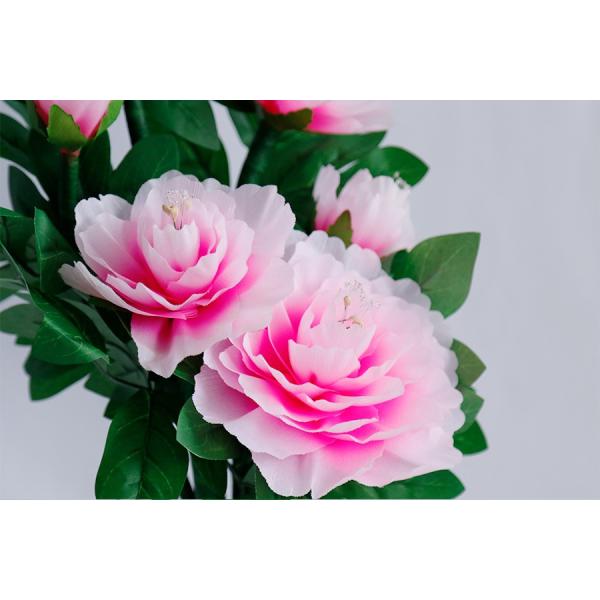 こぼれ落ちそうな花弁、うつくしいピンクのグラデーション。ボタン花の魅力を表現した大輪が咲き誇り、お部屋を豪華に彩ります。シンプルで落ち着いた色調の花瓶に生けられ、LED点灯させない時もお部屋を優雅な「華」を添えてくれます。