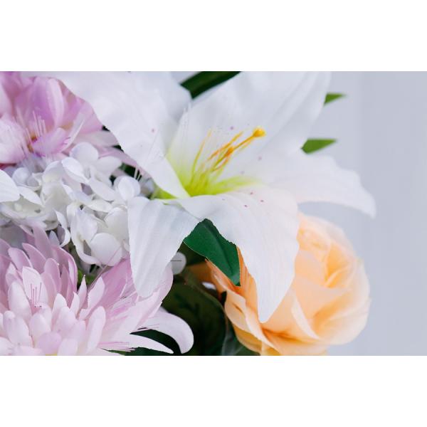 溢れんばかりの花束が、輝き主張する一番華やかな「盛花」。大輪が咲き誇りお部屋を豪華に彩ります。白くスマートな花瓶に生けられ、LED点灯させない時もお部屋を優雅な「華」を添えてくれます。