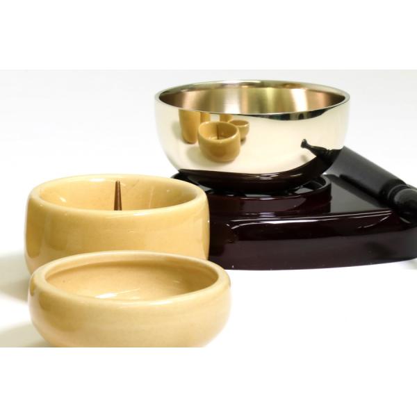 国産 仏具 仏具セット ■ 和柄 5点セット 山吹 + おりん3点 ■ モダン 家具調 仏壇 お供え ■ 香炉灰付 お盆 お彼岸 お墓参り 供養