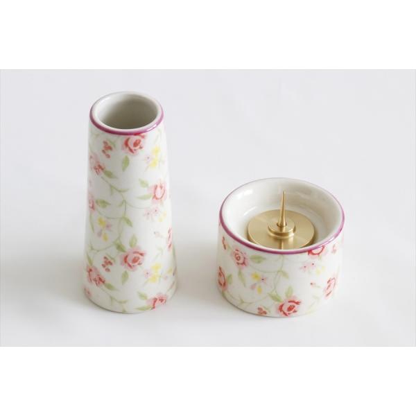 国産 仏具 仏具セット ■ 花柄 5点セット ミニ ピンク + おりん3点 ■ モダン 家具調 仏壇 お供え■香炉灰付 お盆 お彼岸 お墓参り 供養