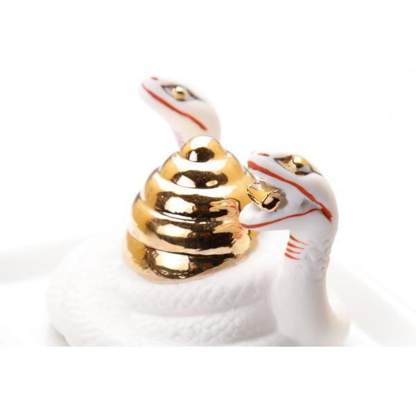 皮を脱ぎながら大きくなっていく「蛇」は開運、昇運、金運をもたらす縁起物の象徴。巳様神信仰に限らず、神棚のお飾りとして人気の陶器神具です。