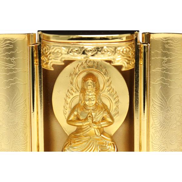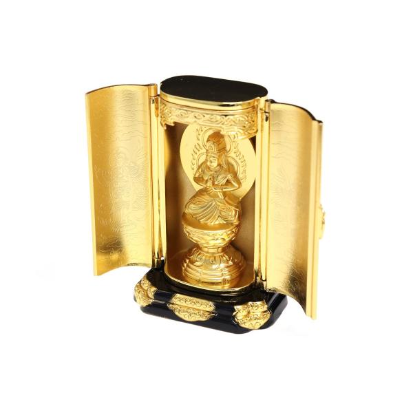 観音開きの扉を開けると天女が現れ、コンパクトながら重量感があり、メッキ仕様の繊細な造りで仏壇を引き立ててくれます。