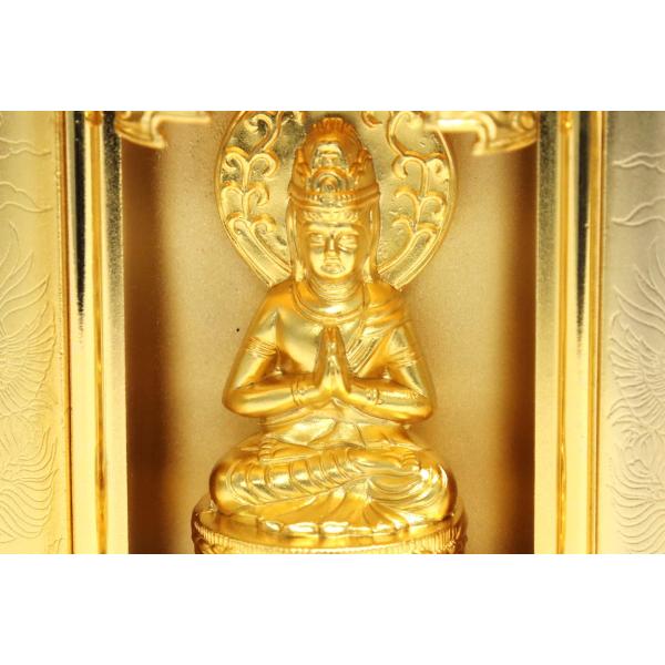 観音開きの扉を開けると天女が現れ、コンパクトながら重量感があり、メッキ仕様の繊細な造りで仏壇を引き立ててくれます。