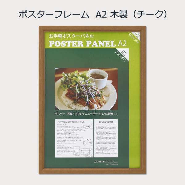 ポスターフレーム A2 (420x594mm) 木製 UVカットペット板 選べる2色 チーク/ナチュラル 額縁 壁掛けフレーム