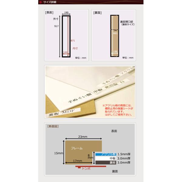 <手ぬぐい額縁短辺半分サイズ(ハーフサイズ スリム)の概要>