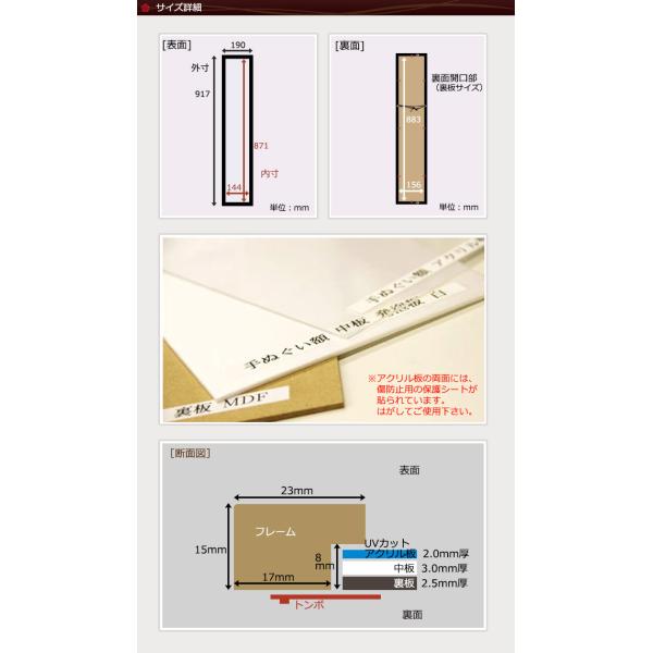 <手ぬぐい額縁短辺半分サイズ(ハーフサイズ スリム) UVカットアクリル板仕様の概要>