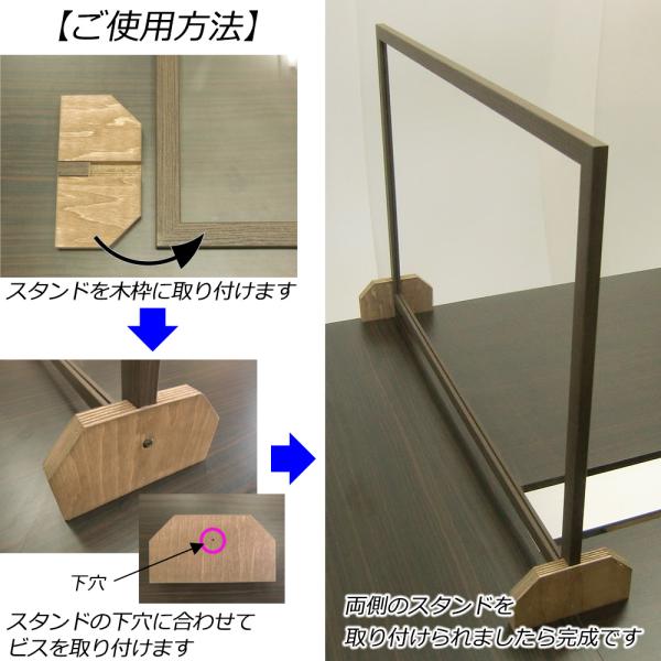 飛沫防止パネル 透明 アクリル板 パーテーション 幅836×高さ560 こげ茶木目/ナチュラル木目 コロナ対策 仕切り 衝立 日本製