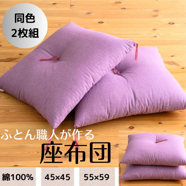 2枚セット 座布団 選べる17カラー 日本製 中綿 コットン 座椅子 クッション 和座布団 ざぶとん セット 座布団セット 和室 和モダン