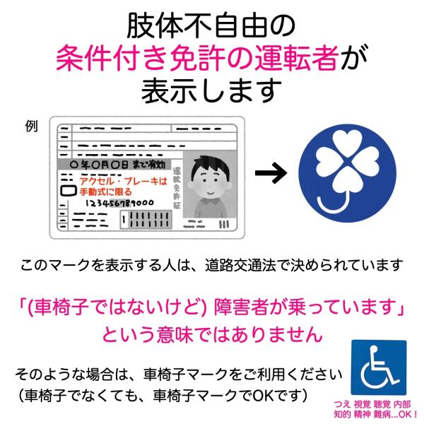【肢体不自由で条件付免許の人が運転】する車に表示するマークです。