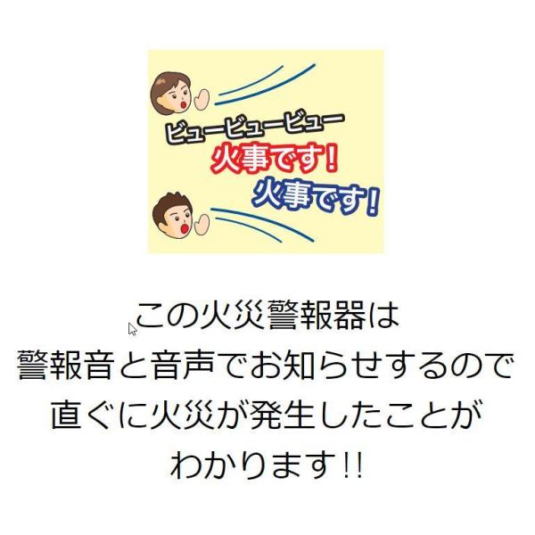 一般的な火災報知機は警報音だけなので、何の警報音かを確認できるまでに時間がかかります。この“けむタンちゃんスリム”は警報音と共に「火事です!火事です!」と音声も合わせてお知らせするので、火事である事がすぐに分かります。