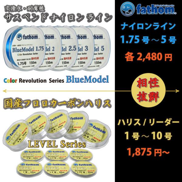 fathom LEVELシリーズは国産フロロカーボン100%(原糸から製造まで国内生産)の高品質ハリス/ショックリーダーです。