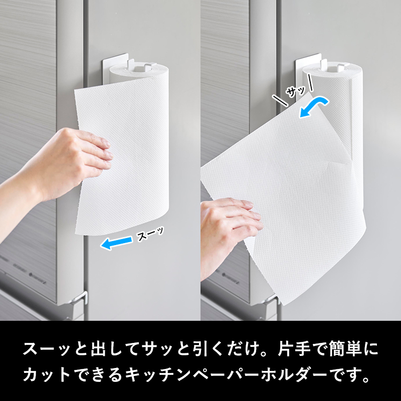 冷蔵庫やキッチンパネルにマグネットで簡単に設置できるキッチンペーパーホルダー。