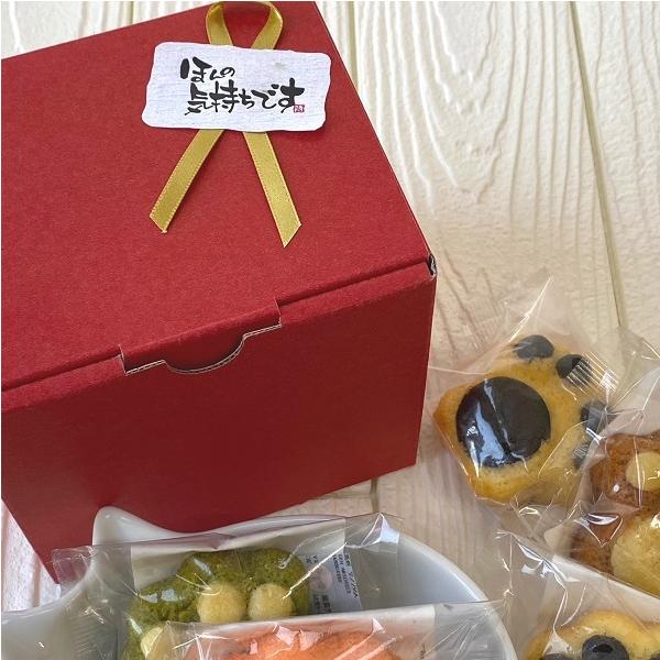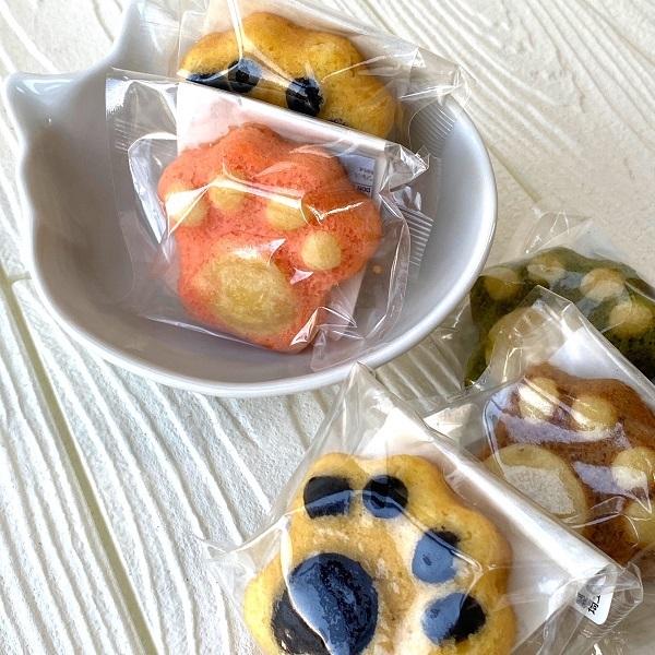 …猫の肉球型のマドレーヌ(プレーン、イチゴ、チョコ、抹茶の4種類)