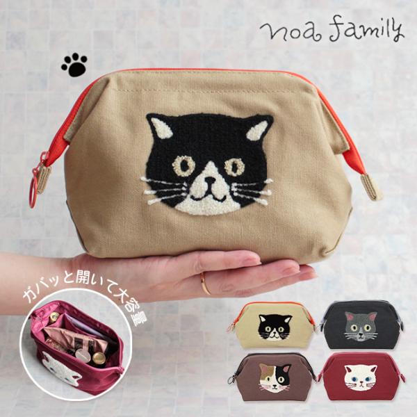 がま口 ポーチ 猫 メイク ワイヤーポーチ プレゼント かわいい ねこ コスメポーチ 化粧 使いやすい 収納 猫柄 ノアファミリー ギフト プレゼント