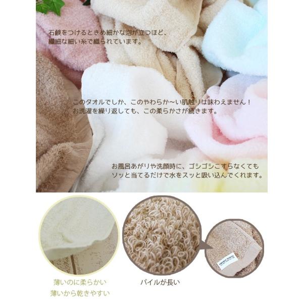 また吸水性にも優れており肌を軽く抑えるだけで水滴をスッと吸い込むので肌への負担が少ないやさしいフェイスタオル。