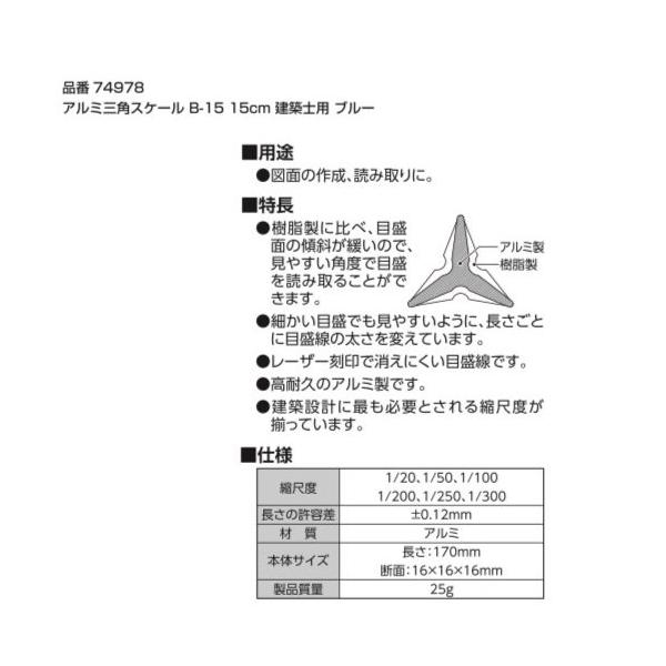 シンワ測定 74977/74978 アルミ三角スケール B−15 15cm 建築士用 ブラック/ブルー